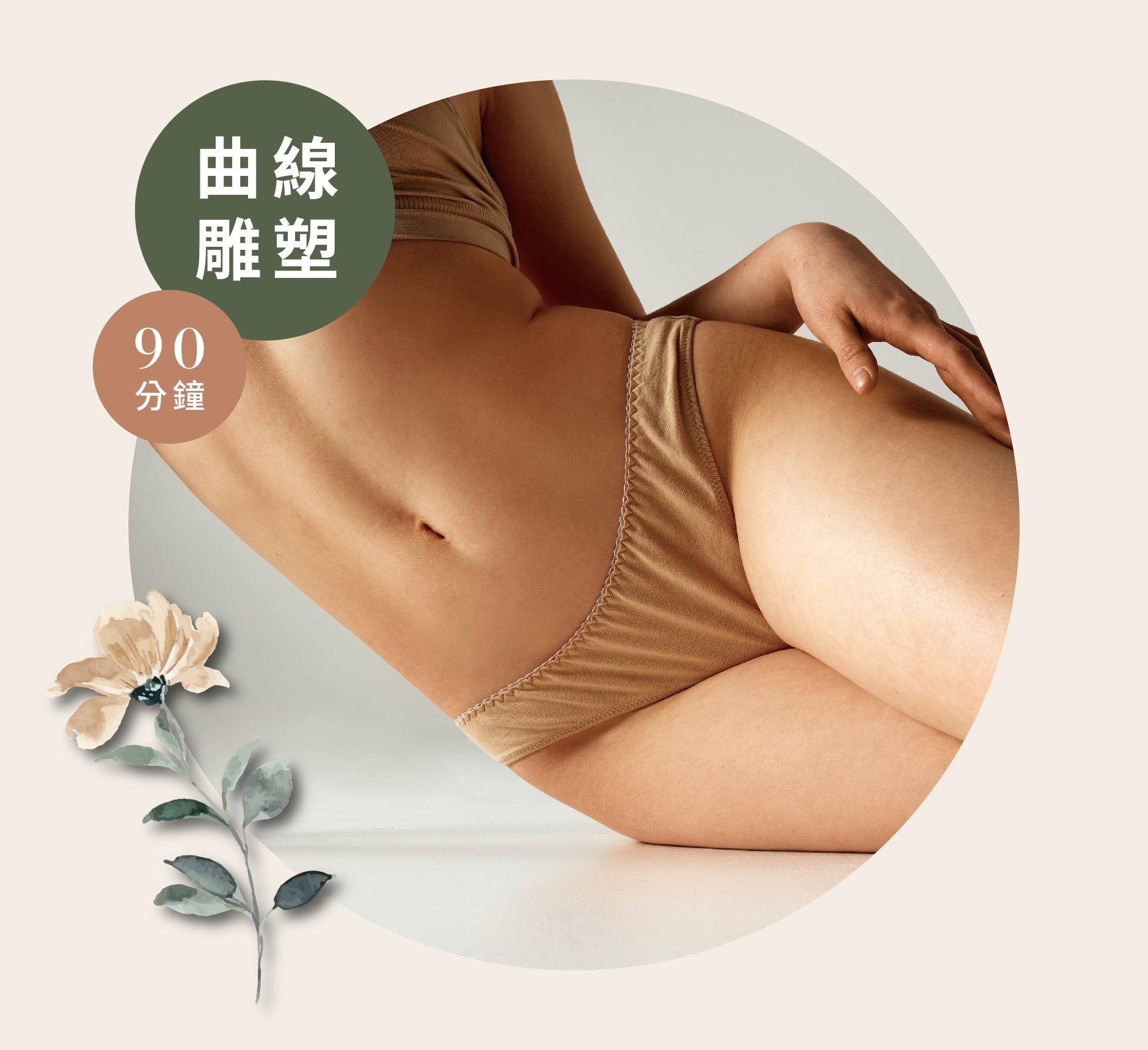 針對水桶腰、蝴蝶袖,採用高效導熱循環產品,搭配循環按摩手技,可促進身體肌膚彈性,達到回復輪廓線,全身放鬆舒暢,全手工打造幸福美感。