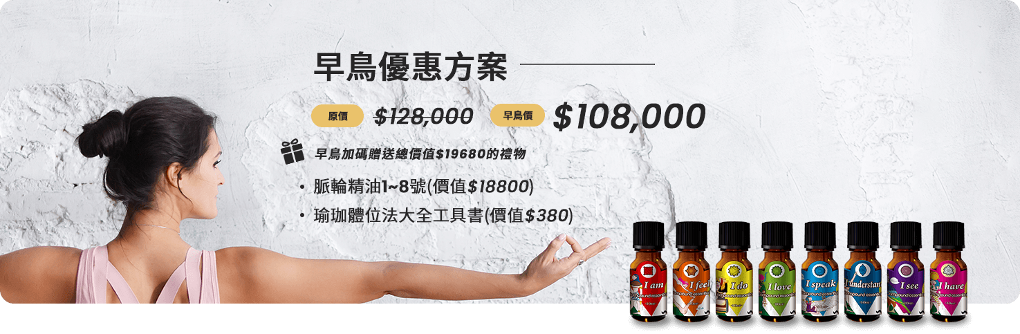 我們鼓勵學習,只要您持有以上證照,即可享有學費早鳥價9折優惠,這是我們對擁有相關瑜伽和運動證照的學員的一項特別優惠,鼓勵更多人進一步深造和提升自己的專業。