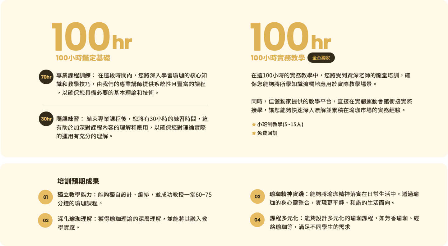 - 100小時,將孕育你成為一名頂尖瑜珈老師,考核