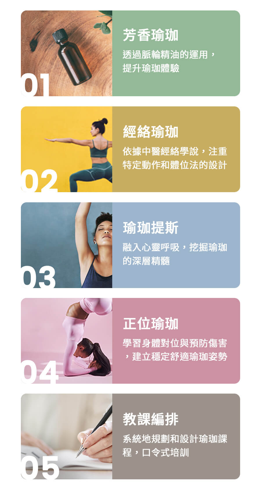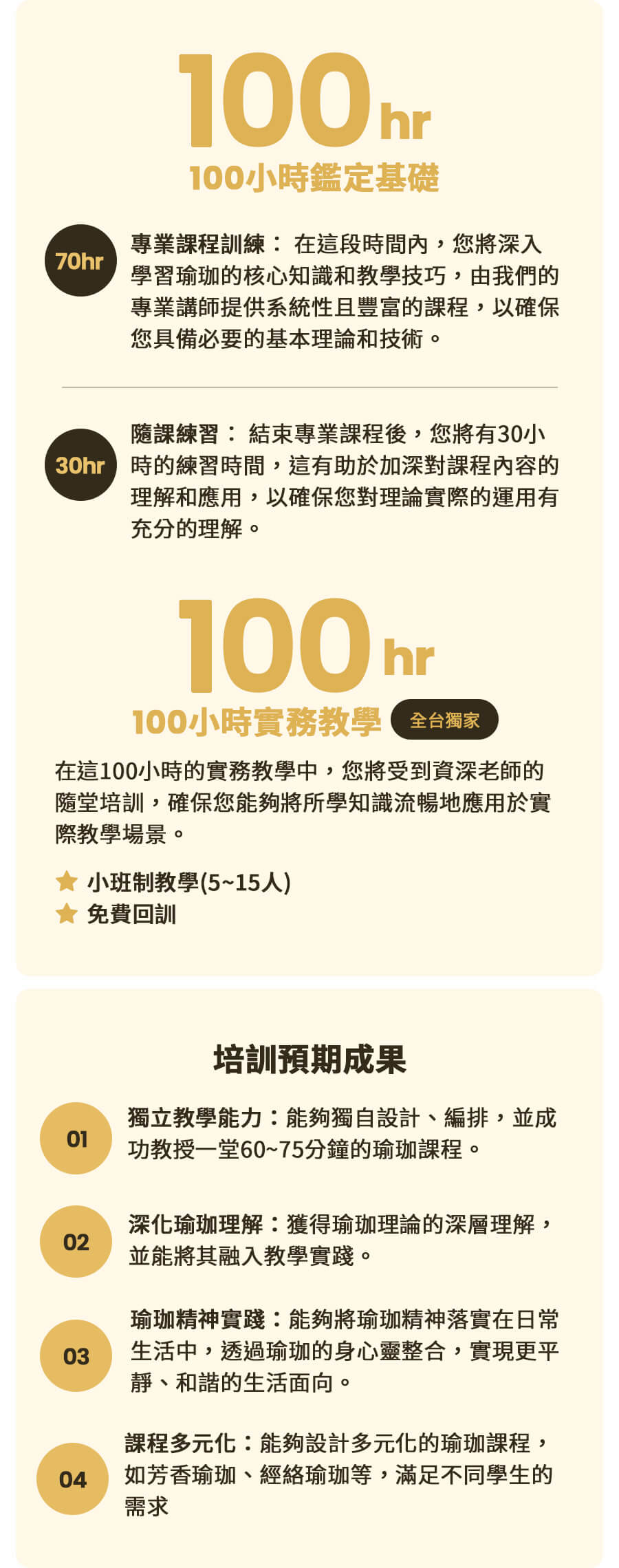 - 密集實技訓練核心瑜珈課綱、30年教學經驗濃縮精