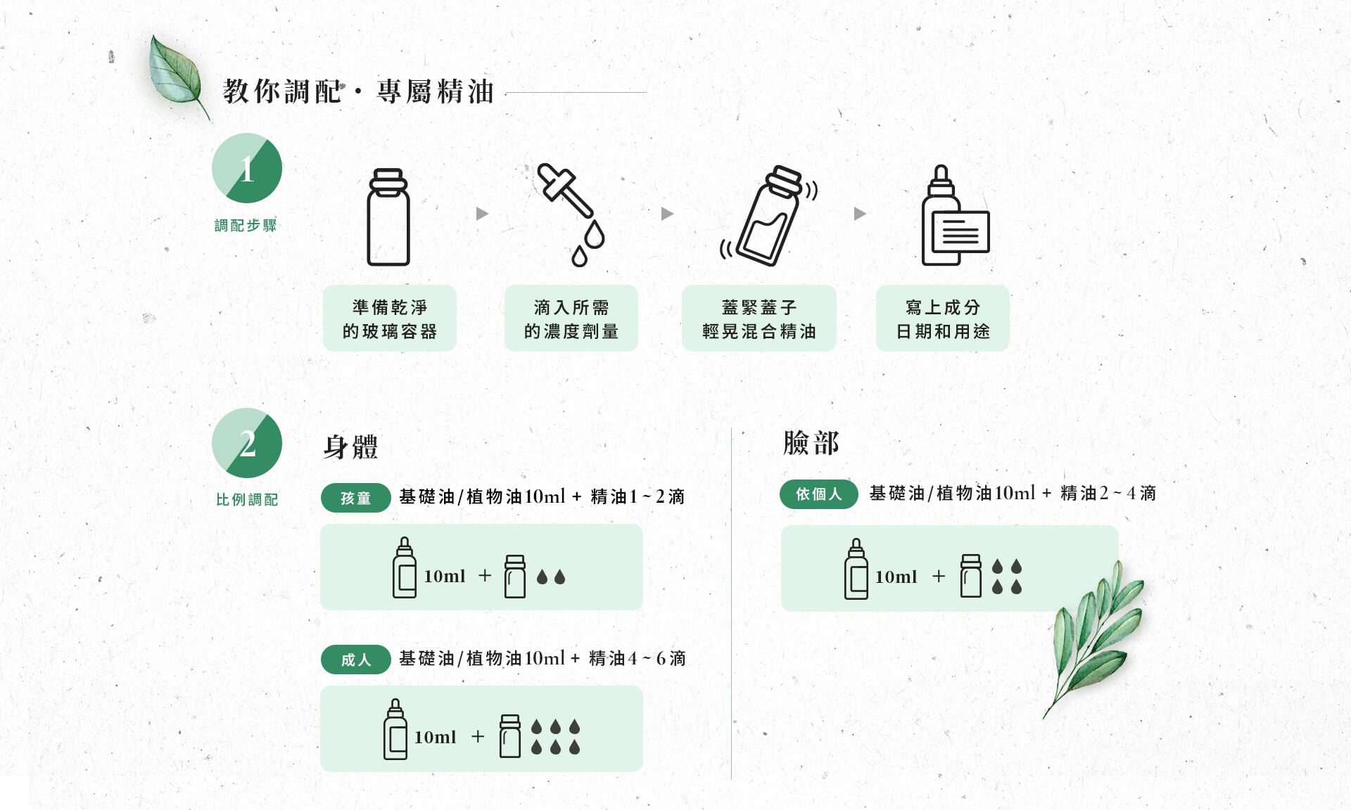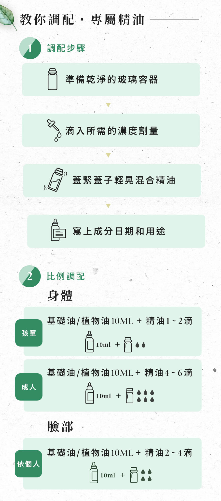 - 經期、孕期和幼童應避免使用-請諮詢專業醫生或專業芳療師。