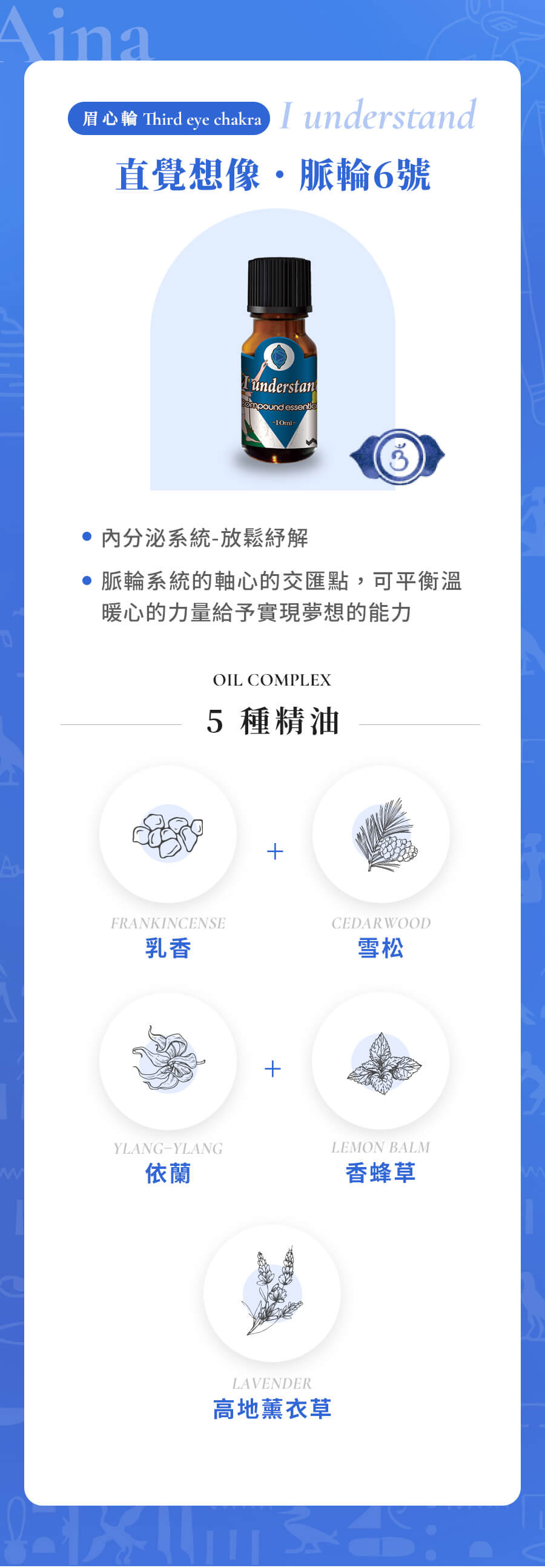 - 全成分:乳香 / 雪松 / 依蘭 / 香蜂草 / 高地薰衣草