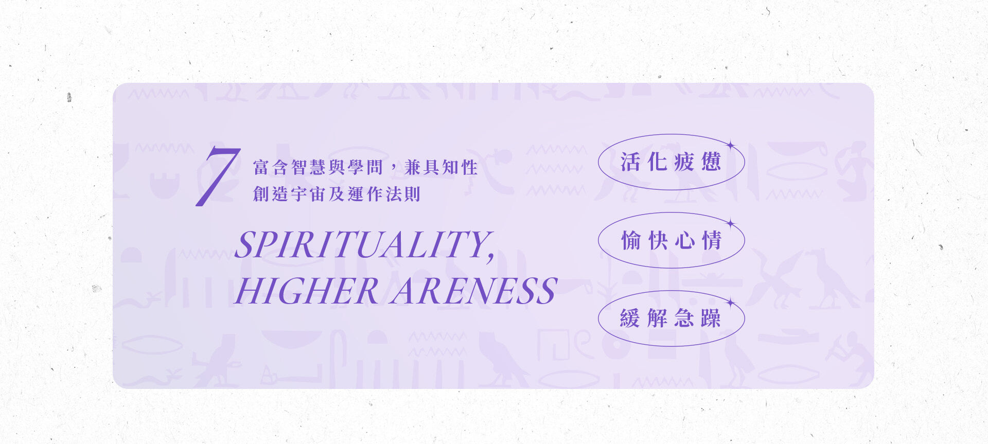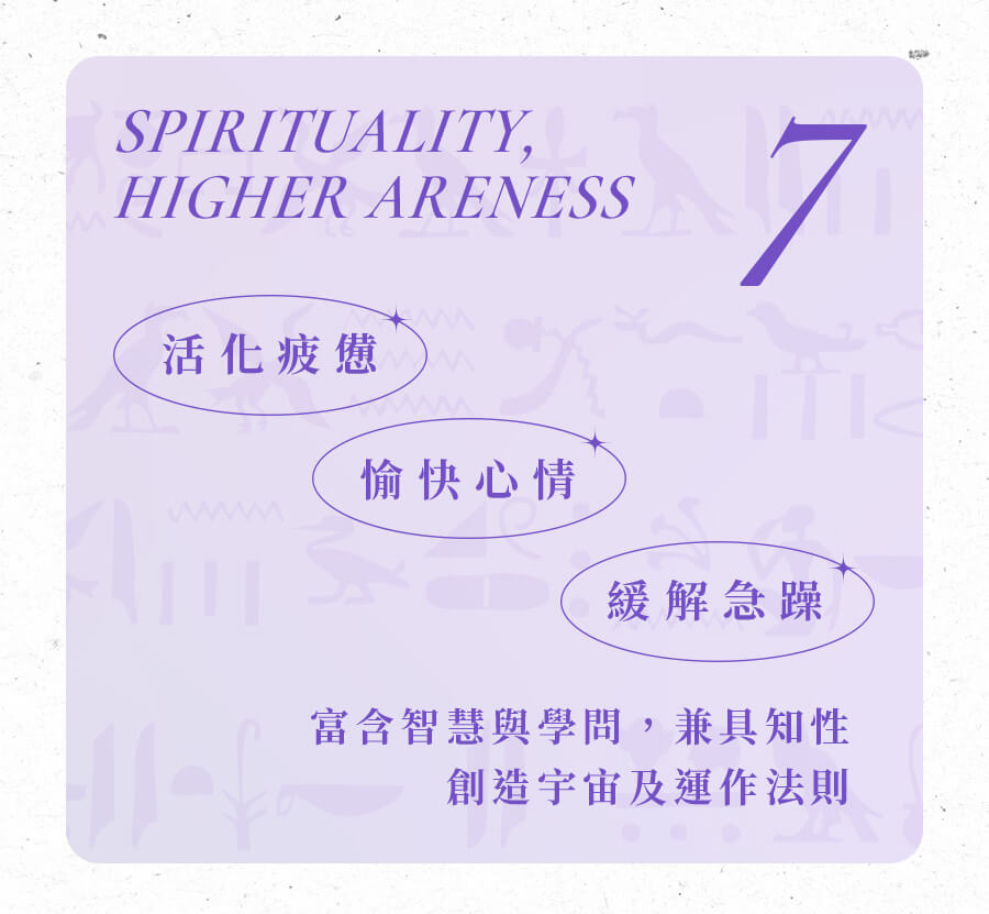- 特性:安靜沉穩。舒解疲憊狀態,穩定心情幫助睡眠,提升靈性達到宇宙合一意識
