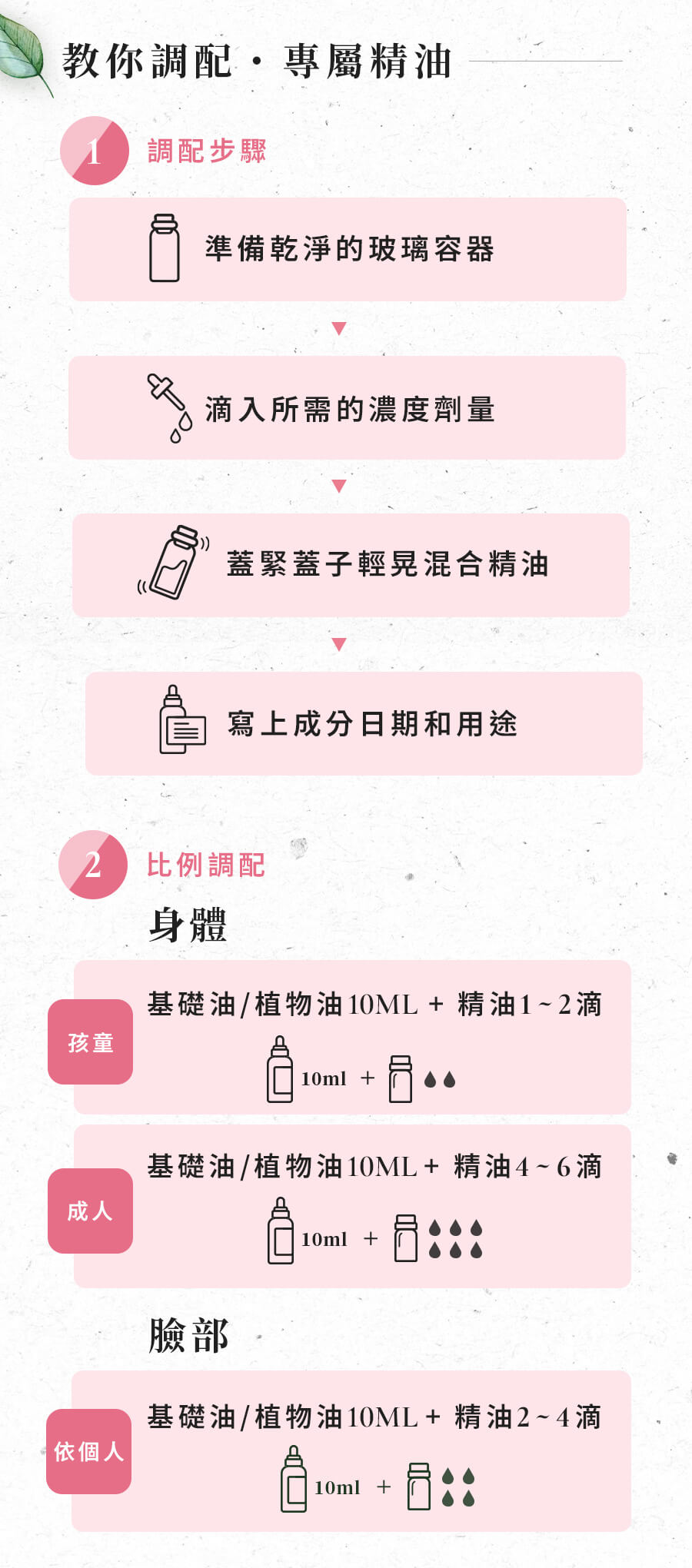 - 精油為易燃物品-請避免靠近高溫或火源處,以免發生危險。